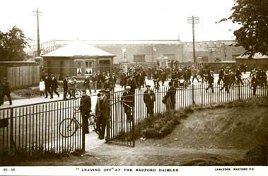 Leaving the Daimler car factory Radford Coventry 1927 photograph